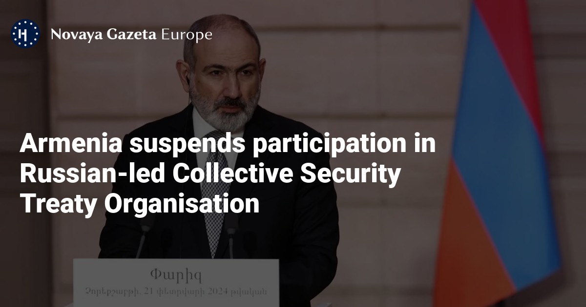 Armenia has “frozen” its participation in the Russian-dominated Collective Security Treaty Organisation (CSTO), Prime Minister Nikol Pashinyan told French television channel France 24 on Thursday.
