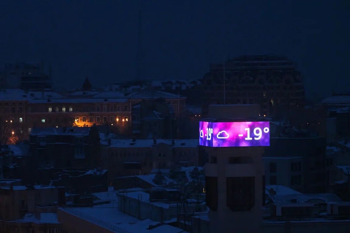 A large screen shows a temperature of -19°C in central Kyiv, Ukraine, 15 January 2026. Photo: Sergey Gapon / AFP / Scanpix / LETA