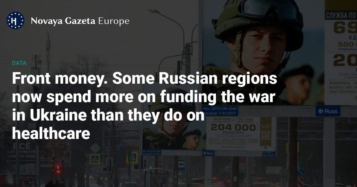 The amount spent by Russia’s regions and its illegally occupied “new territories” in Ukraine on the war this year is set to exceed 800 billion rubles (€7.7 billion) in total, almost 1.5 times more than they spent last year, and that’s a conservative estimate, which doesn’t even include Moscow. In some regions, budget funds allocated to pay for the war now exceed those spent on healthcare.
