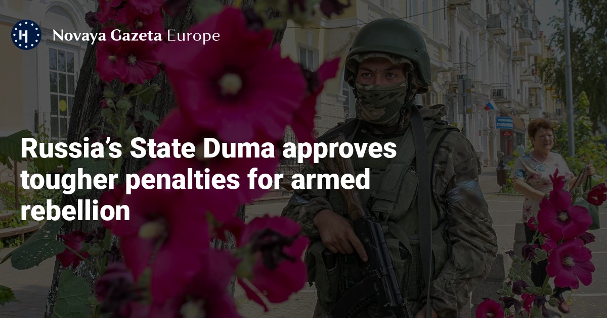 Russia’s lower house of parliament, the State Duma, has adopted the first reading of a bill that would punish organisers and active participants in an armed rebellion more harshly, allowing them to be handed a maximum sentence of life imprisonment, the Duma announced on Tuesday.